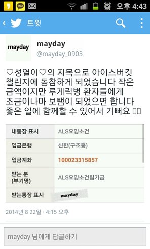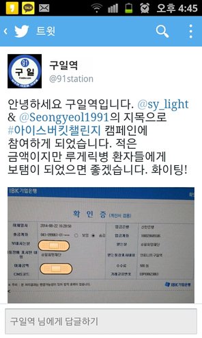 - ↑ 김종국의 아이스 버킷 챌린지를 구경하다가 지목받았다(…)