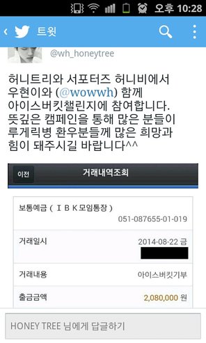 김태희도 드디어 아이스 버킷 챌린지를 했다! 하지만 얼음샤워는 하지 않았고 사진인증으로 대신했다.
