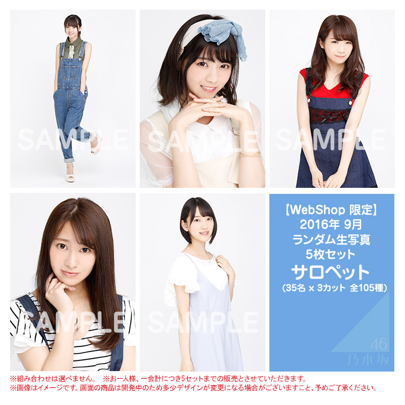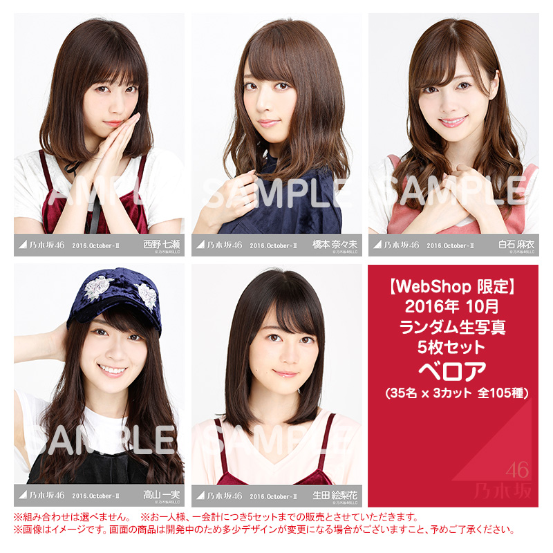생사진은 기본적으로 랜덤 5매에 1,050엔(세금포함)이다. 또한 1인당 5세트까지로 1회 구매 개수에 제한이 있다. 회장의 경우 판매되는 생사진은 종류별로 5세트까지 구매 가능하며, 웹샵의 경우에도 동일하다. 그러나 웹샵에서 개별판매로 판매되는 경우는 각 멤버별로 5세트까지 구매 가능하다.