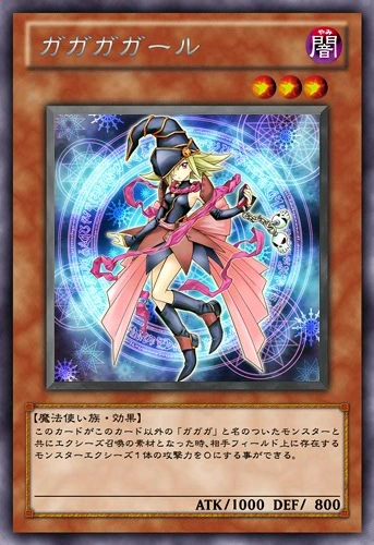 | 이 카드가 이 카드 이외의 "가가가"라는 이름이 붙은 몬스터와 같이 엑시즈 소재가 되었을 때, 필드 위에 존재하는 엑시즈 몬스터 1장의 공격력을 0으로 할 수 있다. | ||||