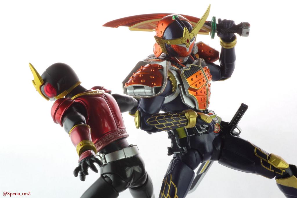 이게 인기 없는 작품의 비애...그리고 설정상으로도 전국 각 지부마다 오니(라이더)가 있기 때문에 어지간해선 히비키를 따라올 작품이 없다.(실은 설정상 119명+@다.)그런데 사실 가이무는 진바 암즈는 과일단면만 변하고 차세대 라이더와 진바 암즈는 소닉 애로우만 쓰며 쿠로카게와 쿠로카게 트루퍼즈는 차이가 전혀 없기까지 한 거저먹는 경향이 있다. - ↑ 사노 가쿠, 코바야시 유타카, 쿠보타 유키가 PV를 찍었다. [1] 참조