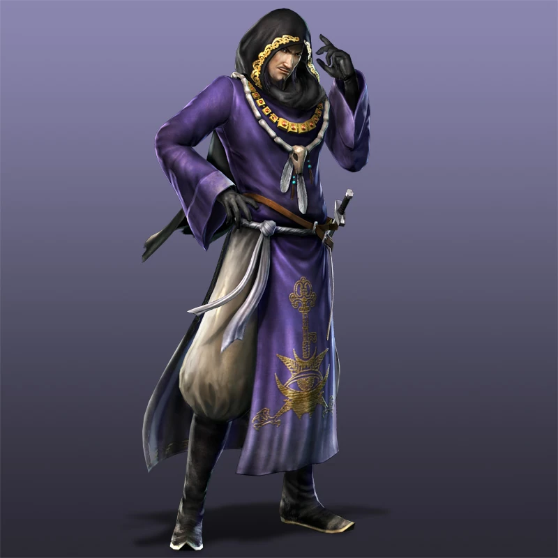 특별 관계 무장은 전위, 타치비나 긴치요, 구로다 간베에, 모리 모토나리- ↑ 보통 진삼국무쌍 시리즈에서 등장하는 책사들은 私(와타시)나 私(와타쿠시), 노인이면 わし(와시)를 쓴다(플레이어블 책사 캐릭터 중에는 노인캐가 없으므로 와시는 클론무장들이 쓴다). 여담으로 작중에서 俺(오레)를 쓰는 다른 책사로는 노숙, 서서와 법정이 있다.