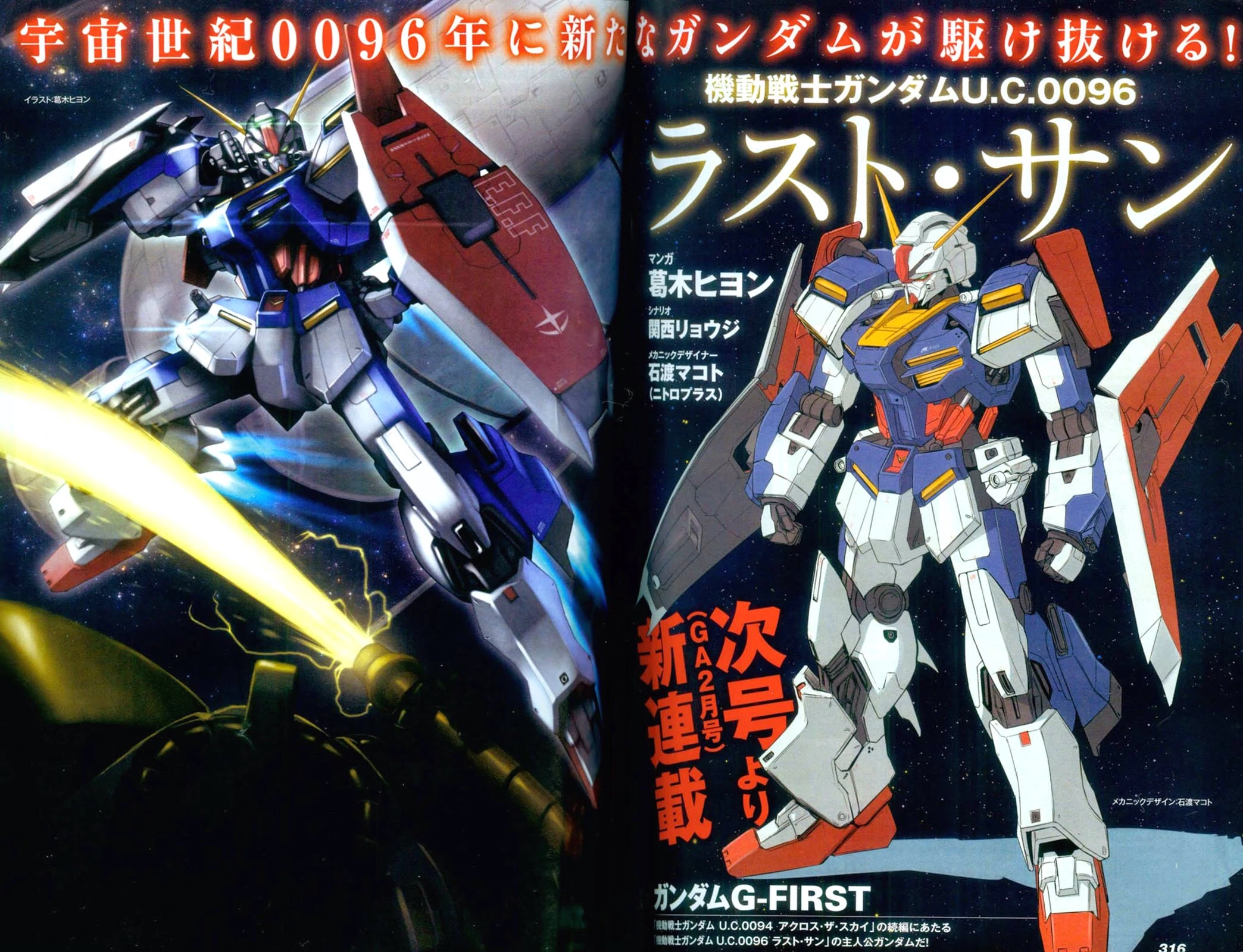 기동전사 건담 UC의 새로운 외전이자, 건담 델타 카이가 활약했던 <기동전사 건담 U.C.0094 어크로스 더 스카이>의 후속작 <U.C.0096 라스트 선>의 주역기. 형식번호는 RIX-001이며, 높이는 21.8 m, 중량은 29.8 t. 디자이너는 UC 본편이나 외전에서 등장하는 기체들의 디자인을 맡았던 카토키 하지메가 아니라, 혁명기 발브레이브 등의 메카닉 디자이너를 맡았던 이시와타리 마코토가 담당했다. 기체 디자인의 모티브는 사무라이로, 머리의 디자인은 영화 <아이를 데리고 다니는 외로운 늑대>의 베일도가 모티브가 되었다고 한다#. 이 때문인지 기체의 두부는 눈썹을 연상시키는 패널라인이 있다.