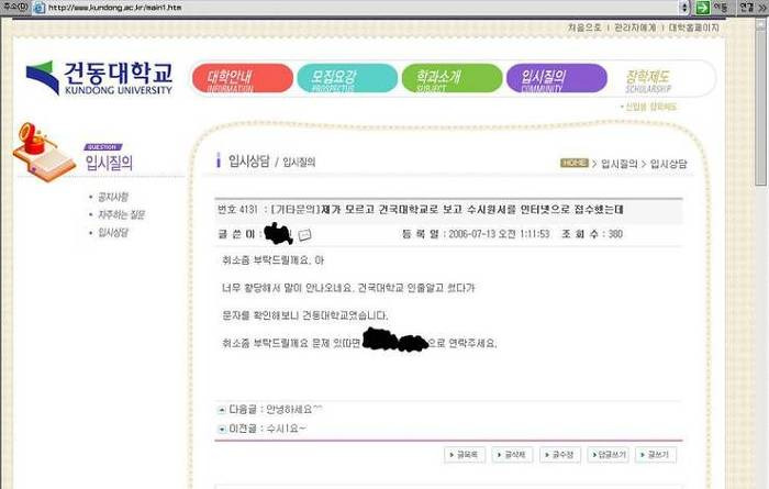 - ↑ 실제로 2006년에 한 학생이 건국대 수시에 지원하여 붙었다가, 알고보니 건동대였다는 것을 알고 건동대 홈페이지에 합격을 취소해달라고 올린 짤방이 있다. #