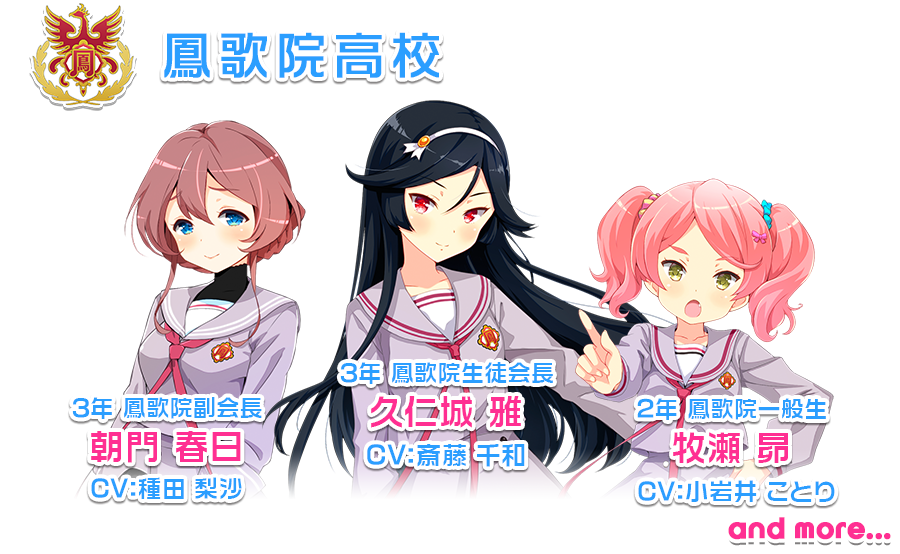 - 3D 모델링이 존재하고, 개별 커뮤니케이션이 가능한 캐릭터. 홈 화면에서 랜덤으로 등장하며, 진심 걸로 선택했을 경우엔 등장 확률이 높아진다. 현재 고를 수 있는 캐릭터 외에도 공식 홈페이지에서 모델링이 존재하는 캐릭터들이 더 있는것으로 보아[2] 앞으로도 계속 추가될 듯. 주인공 유닛인 nonet 멤버들은 볼드 표시.