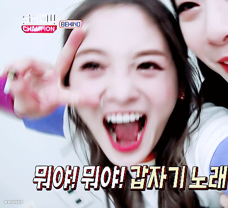 - ↑ 음악방송 뒷무대에서 멤버들과 함께 어울려 비하인드 영상을 찍는 도중, 잠을 며칠째 못잔 나머지 정신이 너무 또렷해졌다며 "우리 지금 너무 이성적이에요."라고 표현하는 남다른 모습을 보였다.