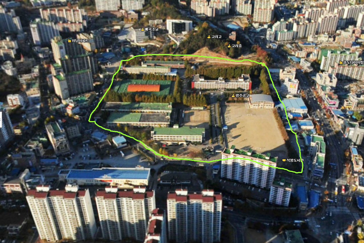 참고 모든선생님들이 입을 모아 말하길. '이렇게 큰 고등학교는 전국에서 얼마없어' 라고 하실 정도. 앞에있는 석봉도서관도 사실 광주공고 소유의 땅이다 도서실이 아닌 도서관을 가지고있는고등학교 이학교는 빼고 말해야할거같다 거긴 대학교보다 더 큰데요..
