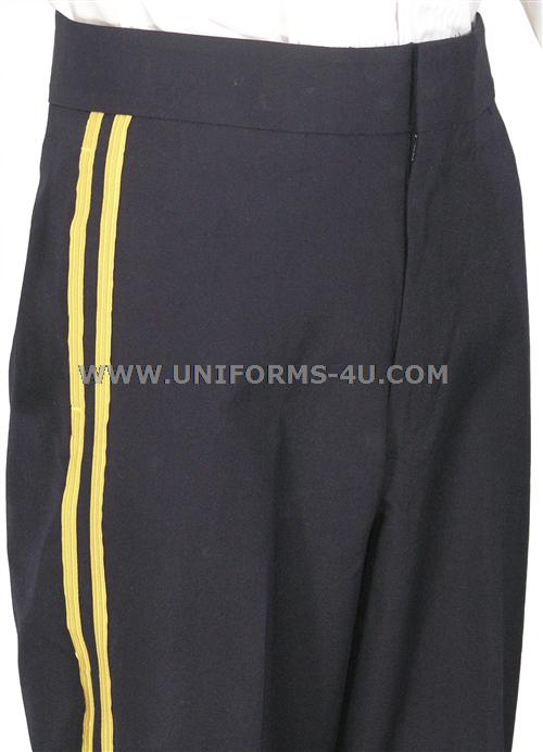 미 해군 최상위 피복으로, 규정상 지시에 따라 계절 구분 없이 착용하는 것이 가능하다(때문에 색깔을 가지고 국군처럼 동정복/하정복으로 나누지 않는다.). 단, 아무래도 기후를 고려해 주로 동절기나 춘추기 등에 착용하는 일이 많다. 재질은 모직이며, 신발은 검정색 단화(구두)를 신는데, 칠피로 된 에나멜 단화와 가죽 단화 중 개인이 선택해 신을 수 있다.[8]