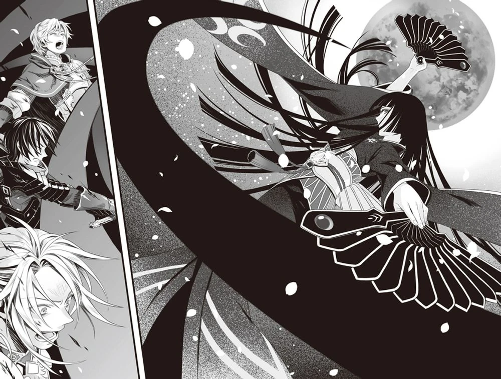 12화 '라르크베르크'의 막바지에, 적으로 돌아선 라르크베르크와 테리스 알렉산드라이트와의 전투에서 승기를 잡은 나오후미 일행의 앞에 등장. 13화 '혼유약'에서 라르크, 테리스와 동료임을 인증하고 전투에 돌입, 단신으로 싸웠던 저번과 달리 3대 3 싸움인데다가 테리스와의 합동 스킬까지 사용했지만 나오후미가 상당히 강해진대다가, 소울 이트 효과를 가진 소울 이터 실드가 취약점임이 발견되어 큰 데미지를 입게 되고, 라프타리아의 마력검 공격에 의해 치명상은 피했으나 상당한 데미지를 입게 된다. 그러나 라르크가 사용한 혼유약에 의해 능력치가 대폭 상승, 나오후미를 밀어붙인다. 신 기술 '달 쪼개기'까지 사용해가며 맹공을 펼치지만, 나오후미의 다크 커스 버닝에 의해 힘을 소모하게 되고, 결국 파도의 제한시간이 닥쳐오자 동귀어진을 각오하고 공격을 가하려고 했으나 라르크의 만류로 그만두고 후퇴한다.