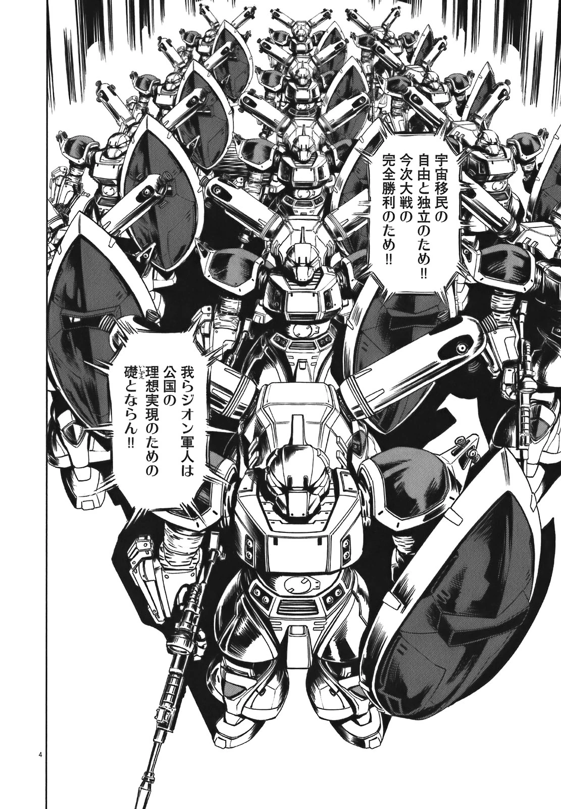 - ↑ 4권에서 등장한 남양동맹의 MS는 짐 계열 MS의 시초인 자쿠를 개조한 쟈니 라는 MS다.