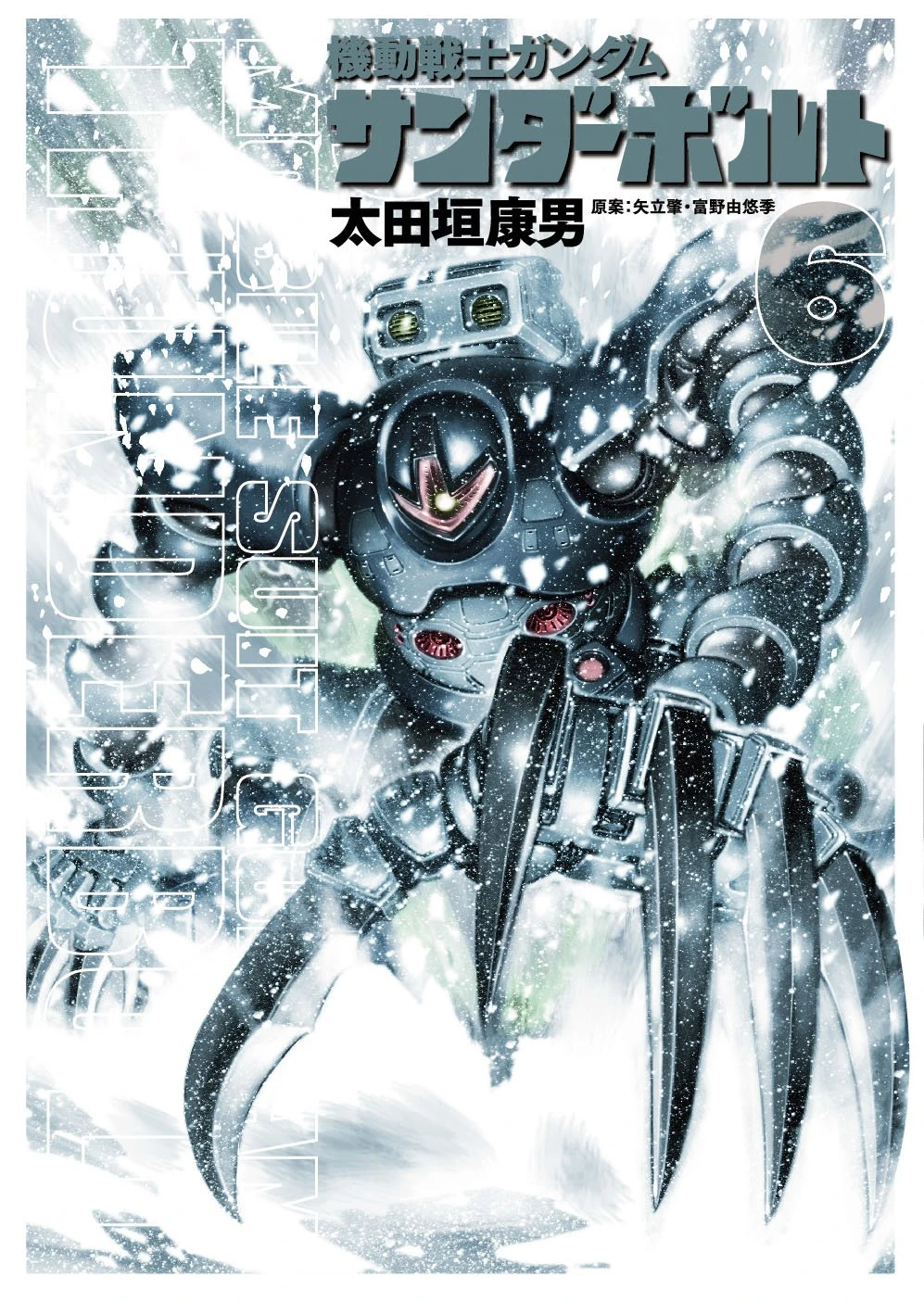 - 썬더볼트 주역 : 작중에서는 지온 공국군의 요새인 아 바오아 쿠의 유일한 보급로라고 나오지만 주변 환경은 대파된 함선과 모빌 슈트의 잔해(데브리)와 미노프스키 입자로 인해 방전 현상[15] 때문에 웬만한 기체들은 진입할 수가 없다. 이때문에 탈환하려는 쪽과 지키려는 쪽 모두 기체 관절부를 보호하기 위해 특수한 장갑을 장착한다.
