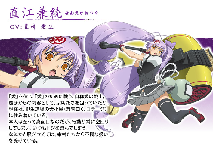 자칭 사랑의 전사. 도쿠가와 요시히코가 야규 무네아키라 일행을 감시하기 위해서 보낸 스파이로서 부오우 학원에 보낸다. 요네지와 출신으로 사나다 유키무라와는 과거 알고지냈던 사이였지만 그녀의 거짓말에 넘어가서 수치를 당한 이후로[1] 원한을 품고 있다. 사용하는 무기는 거대한 망치.