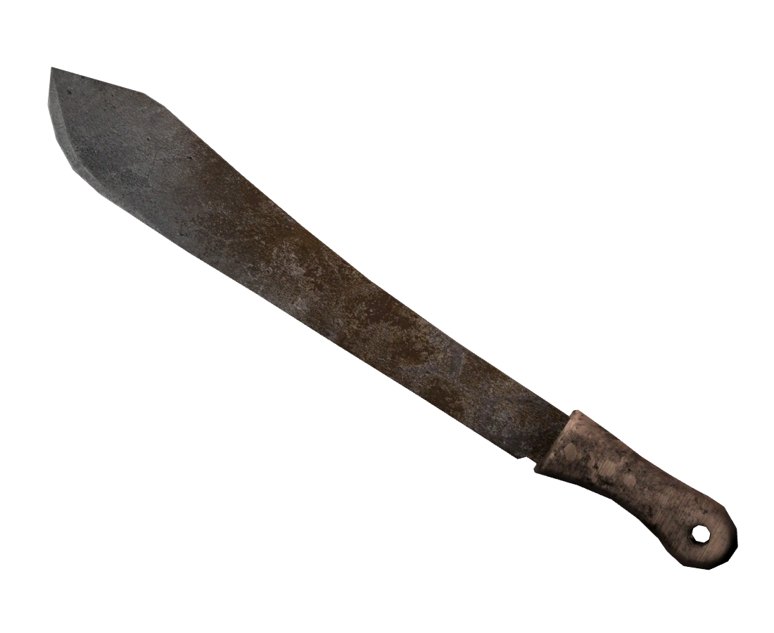 리버테이터와 함께 마체테의 유니크로, 이 세계의 마체테가 잔디깎기 날에 손잡이를 붙인 전혀 칼 같지 않은 - 아니, 그렇다 하더라도 매우 조악하고 조잡한 모습을 하고 있다면, 이 무기는 '마체테'라는 이름답게 제대로 된 칼 같은 생김새이며, 다른 무기들과 다르다는 것을 보여주기 위해선지 전용 핍-보이 이미지도 있다. #