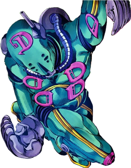 여러모로 7부의 THE WORLD와 외형이 비슷한 부분이 많다. 잠수부같은 외형에 온몸에 D가 쓰여있는 모습이 판박이.