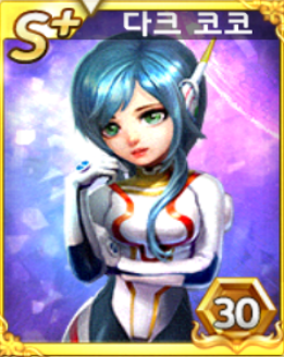 | 설명 | 나오자마자 고인 뒤로가는 미1친년2 기존 코코의 스탯이 상향되고 내장 행운아이템의 발동 확률도 100%로 상향되었으나, 다크 트리샤에 비해 밀리는 스탯과 오히려 활용하기 애매한 내장 행운아이템 때문에 다크 캐릭터 중 인기 최하위를 달리고 있다. 그게 어느 정도냐면, 공식 카페에서 극찬을 받은 별명이 무려 "뒤로가는 미X년"이란다. 영원히 고통받는 故코 |