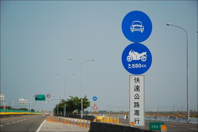 이게 바로 대만 성도의 자동차전용도로 구간 입구에 설치된 자동차전용도로 표지판과 550cc이상 오토바이는 들어가도 된다는 뜻의 표지판이다.