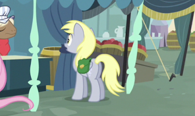 바로 이 에피서부터 본격 사시로 바뀌었는데, 택배로 배달하던 물건을 트와일라잇의 머리 위로 떨어뜨린 용의자가 바로 얘다. 이로써 이 에피 첫방 이전에 포니빌의 우편을 담당한다는 설정을 부여한 팬들은…