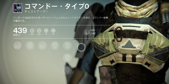 | 이 방탄 헬멧은 타이탄 스스로의 빛으로 자극을 줘 파편, 총탄으로 보호합니다. | 암흑기에 태어나 대붕괴를 겪어왔습니다. 초보 타이탄들에게 무지막지한 방어력을 자랑합니다. | 건틀렛, 팔갑옷, 그리고 타이탄의 팔 접합부는 거대한 힘에 버틸 수 있습니다. | 적이 도시로 진격할때 마지막 명령은 항상 맞써 싸워라입니다. |