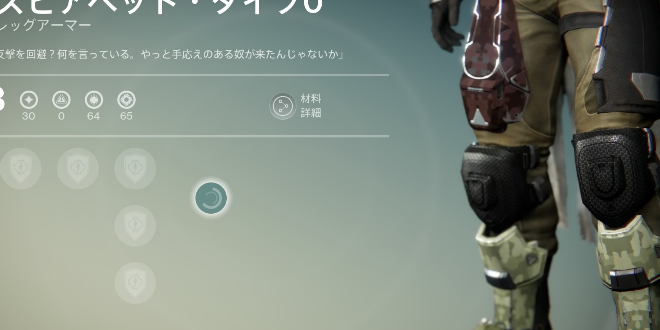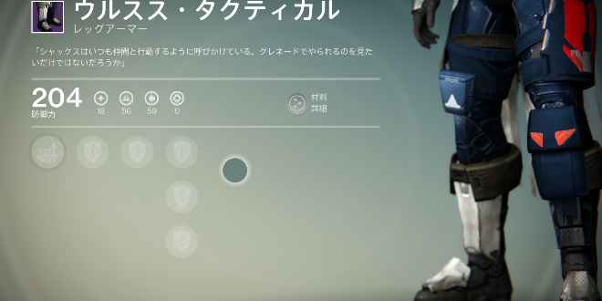 | 적의 포화에 대응할 수 있는 방법은 태세를 유지한채 조용히 지나가는 겁니다.(태양 군단 결사단이 이 헬멧을 새로운 타이탄을 위해 기증했습니다.) | 게이트워치에서 파생된 이 갑옷은 여러 유혈사태의 교훈을 통해 만들어졌습니다. | 번개같이 빠른 정비 시간을 갖고 있습니다. | "혁신적인 기동성이 럭셔리하다. 반전 기동성이 필요하다." - 논쟁 교리에서 |