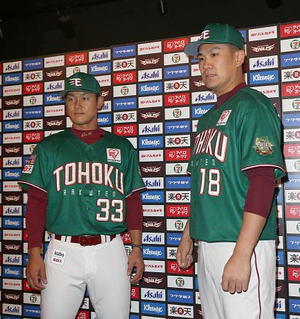 2013년 하계 유니폼. 정식 명칭은 TOHOKU GREEN. 도호쿠 멕시코?