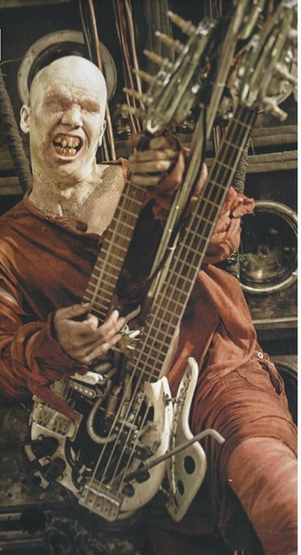 화염방사기가 장비된 더블넥 전기 기타를 연주한다.[5] 기타는 실제로 연주가 가능한 기타로, 원래는 불만 나오고 연주는 안 되는 단순한 소품이였으나 조지 밀러 감독이 "이거 스피커는 어디에다 연결해?"라고 까라면 까를 부드럽게 돌려서 한마디 하는 바람에 연주되는 것으로 다시 만들었다고 한다. 다만 생긴 것 때문에 소리 자체는 영 별로였다고. 당연히 음악은 나중에 따로 연주해서 넣은 것이다.