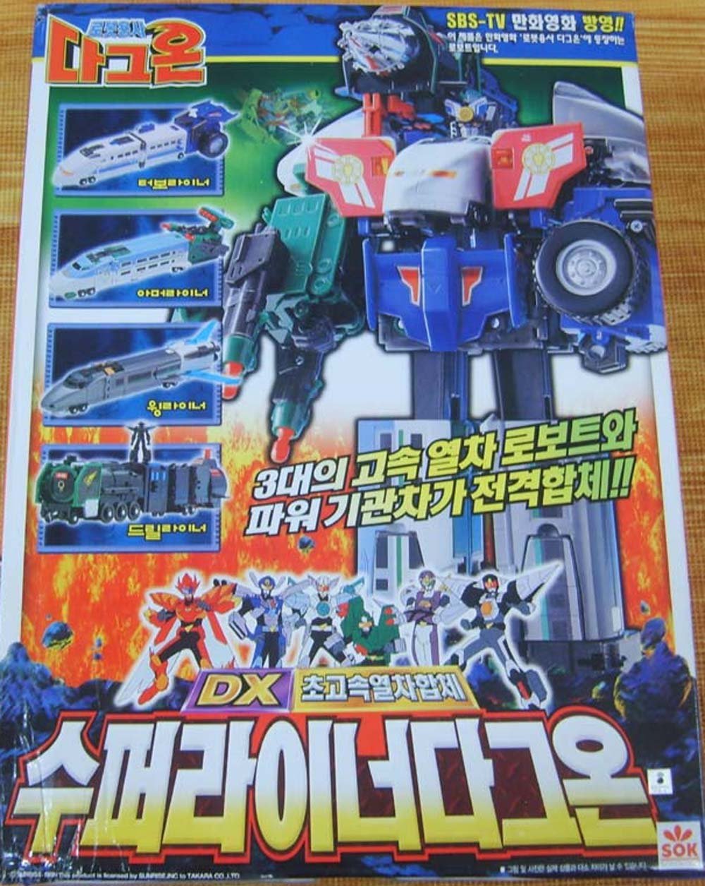 라이너 다그온. DX 완구는 역시나 동심파괴(...) 왼팔과 오른팔에 탱크와 레이싱카가 통으로 붙기 때문에 좀 심하게 언밸런스하며, 극중과는 달리 체형이 옆으로 퍼져 있고 다리가 짧다.(...) STD완구도 DX와 동일. 심지어 비슷하게 합체하는 트라이범버와는 달리 가동이 거의 안된다. 출처