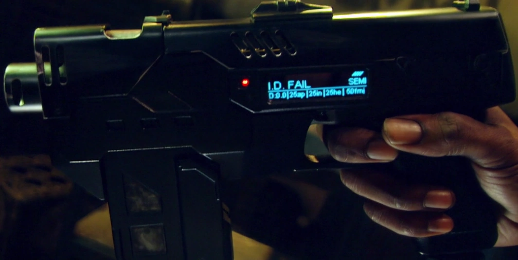그리고 음성 기믹 및 LED 점등기능, 사격 기능을 갖춘 레플리카가 만들어졌다. 프롭의 베이스는 베레타 92FS다.