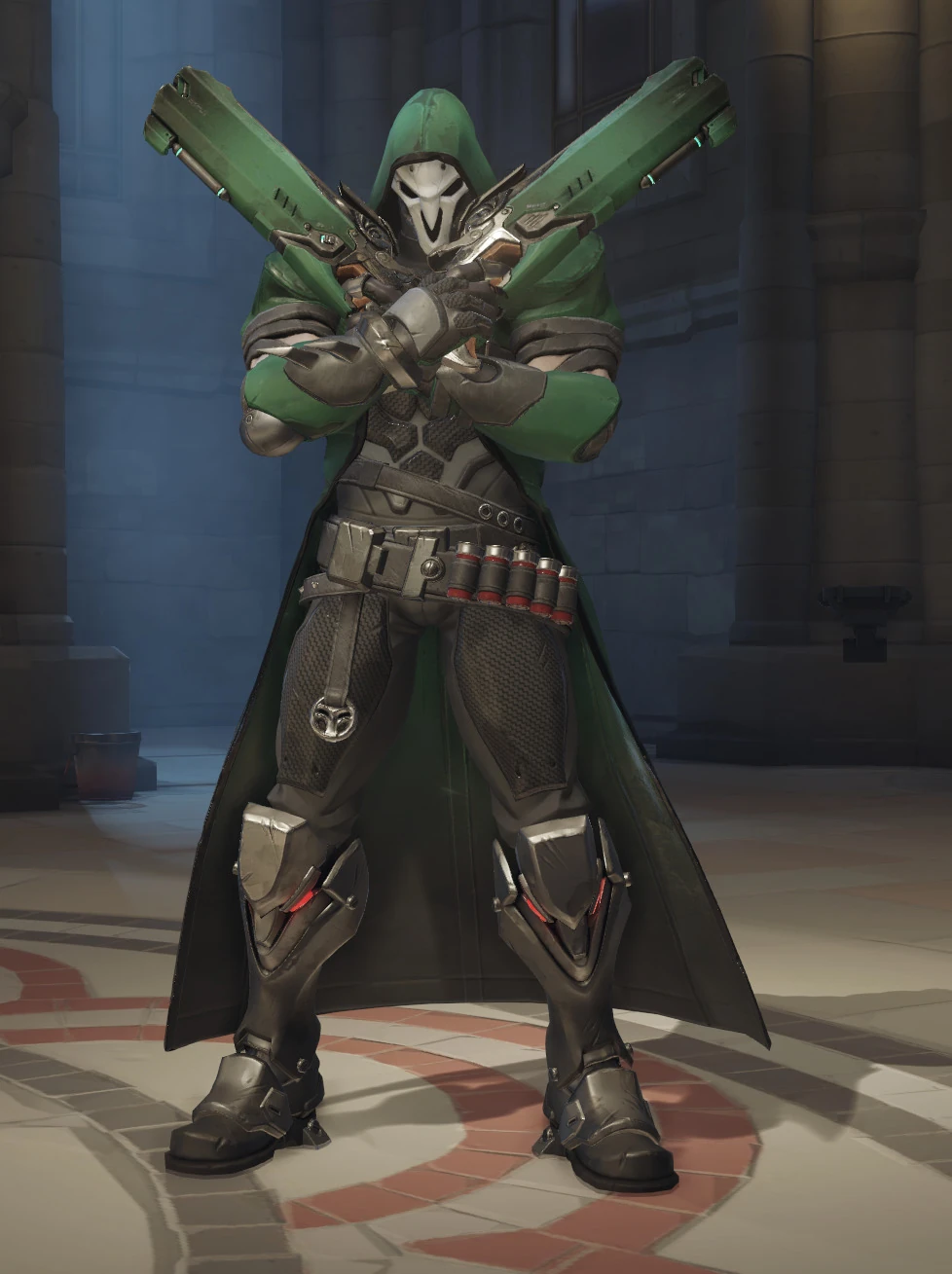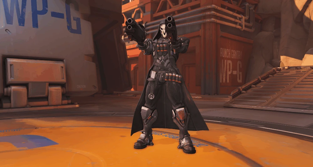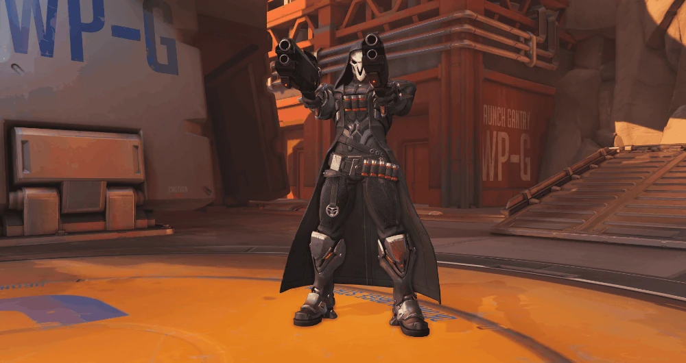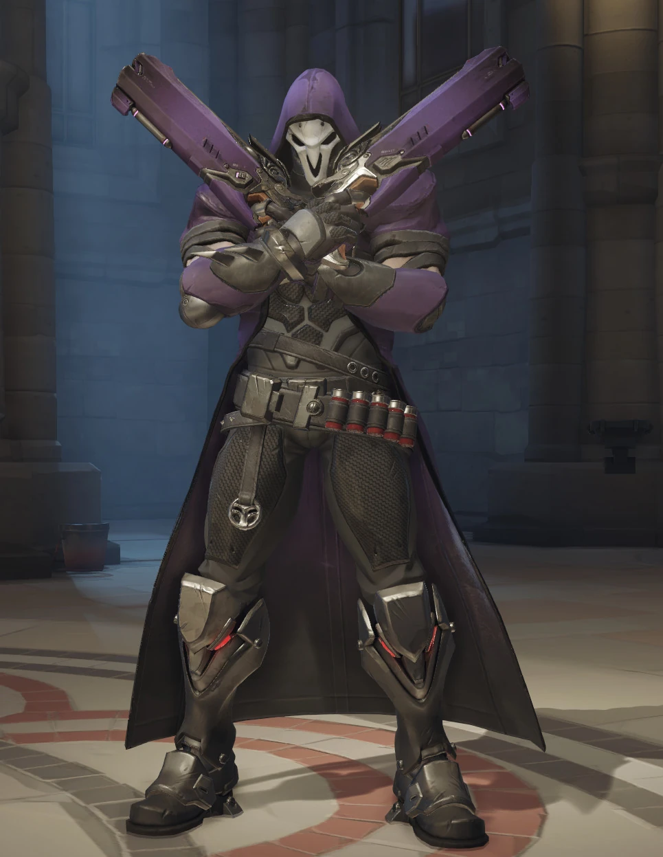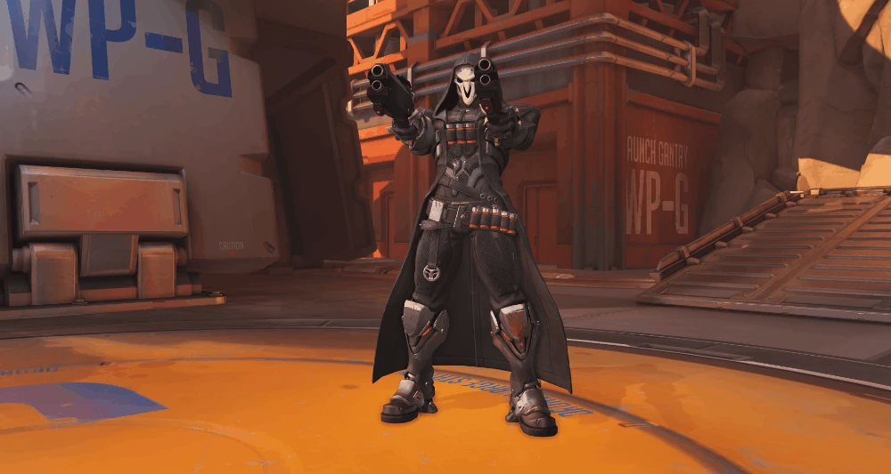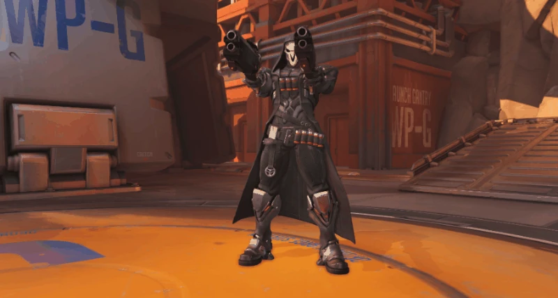 검은 연기를 휘감고 사방에 총을 난사하며 다가온다. 간지가 넘치기도 하고 보통 리퍼의 하이라이트는 궁극기 사용일 때가 많아서 기본을 제외하면 가장 착용하는 사람이 많은 편.