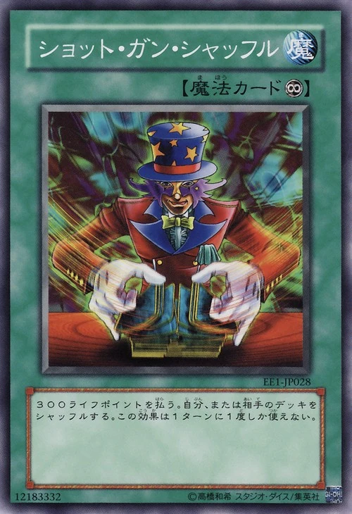 | ①: 1턴에 1번, 300 라이프 포인트를 지불하고 이 효과를 발동할 수 있다. 자신 또는 상대의 덱을 셔플한다. | ||||