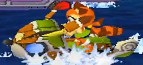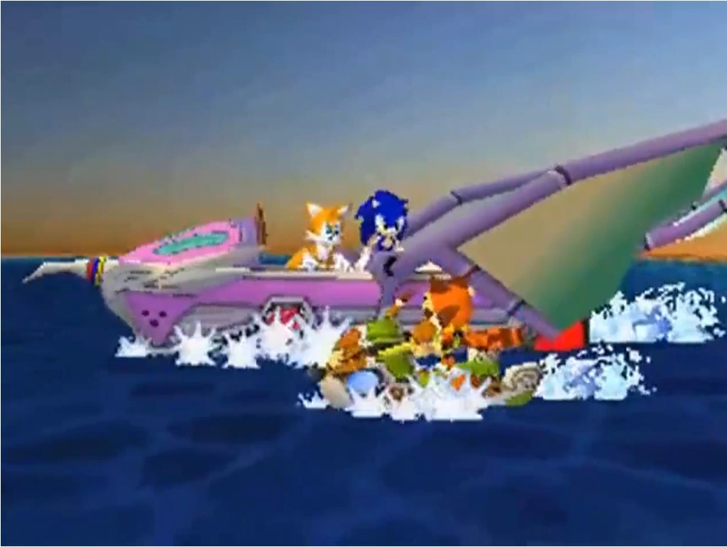 마린 일행은 다수의 배가 실종된 해역에서 위스커와 다시 마주치지만, 그들이 무엇을 하고 있었는지는 알아내지 못한다. 그러나 전자파의 원인은 밝혀지는데, 그냥 유령선에 있던 실버 머티리얼이 자연적으로 내뿜는 전자파였다. 테일즈는 산호 동굴에서 발견한 레드 머티리얼을 이것과 조합하여, 호버크래프트 '아쿠아 블래스트'를 만든다.
