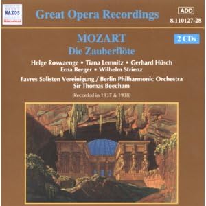 EMI에서 나온 또 다른 마술피리 전곡반으로 토마스 비첨과 베를린 필이 연주한 것으로 알려진 음반이 있다. 이 음반은 1937년에 녹음된 세계최초의 마술피리 녹음으로[36], 고전적인 마술피리의 명반으로 사랑받았던 음반이다. 저작권 만료가 된 덕에 낙소스같은 마이너 레이블에서 염가반으로 발매되고 있다. 다만, 오토 클렘페러 지휘반과 마찬가지로 대사 부분이 생략되었다는 점과 모노 녹음에다 파미나역을 맡은 티아나 렘니츠의 행적에 대한 논란[37], 위 음반들에 비해 너무 고전적인 음악적 해석 때문에 시원한 연주를 기대한 이들에게는 호불호가 갈릴 수도 있다. 사실 이 음반은 비첨과 베를린 필의 연주가 아니라는 논란이 있다. 비첨이 베를린 필과 독일 징슈필을 녹음할 리가 없잖아 기사 참조