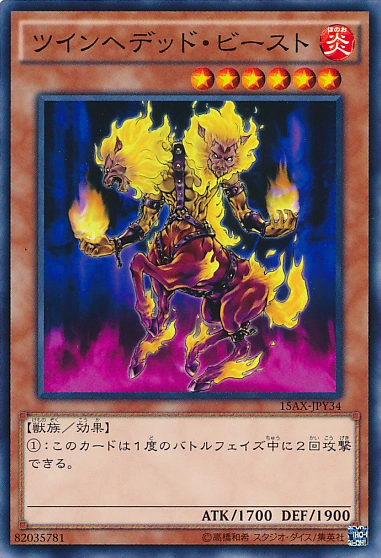| 1번의 배틀 페이즈 중에 자신 필드 위에 존재하는 몬스터의 전투에 의해서 상대 몬스터를 2장 이상 파괴했을 경우, 이 카드는 그 배틀 페이즈 중에 2회 공격할 수 있다. | ||||