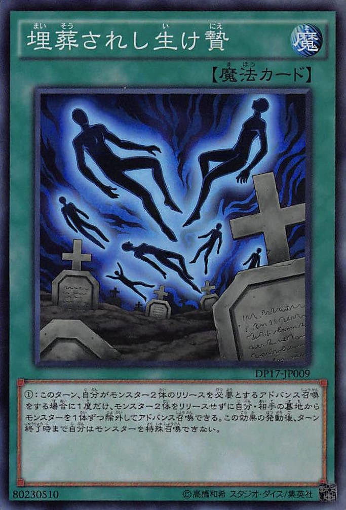 | ①: 이 턴, 자신이 몬스터 2장을 릴리스할 필요가 있는 어드밴스 소환을 하는 경우, 1번만 몬스터 2장을 릴리스하지 않고, 자신 또는 상대의 묘지에서 몬스터를 1장씩 게임에서 제외하여 어드밴스 소환할 수 있다. 이 효과를 발동 후, 턴 종료시까지 자신은 몬스터를 특수 소환할 수 없다. | ||||