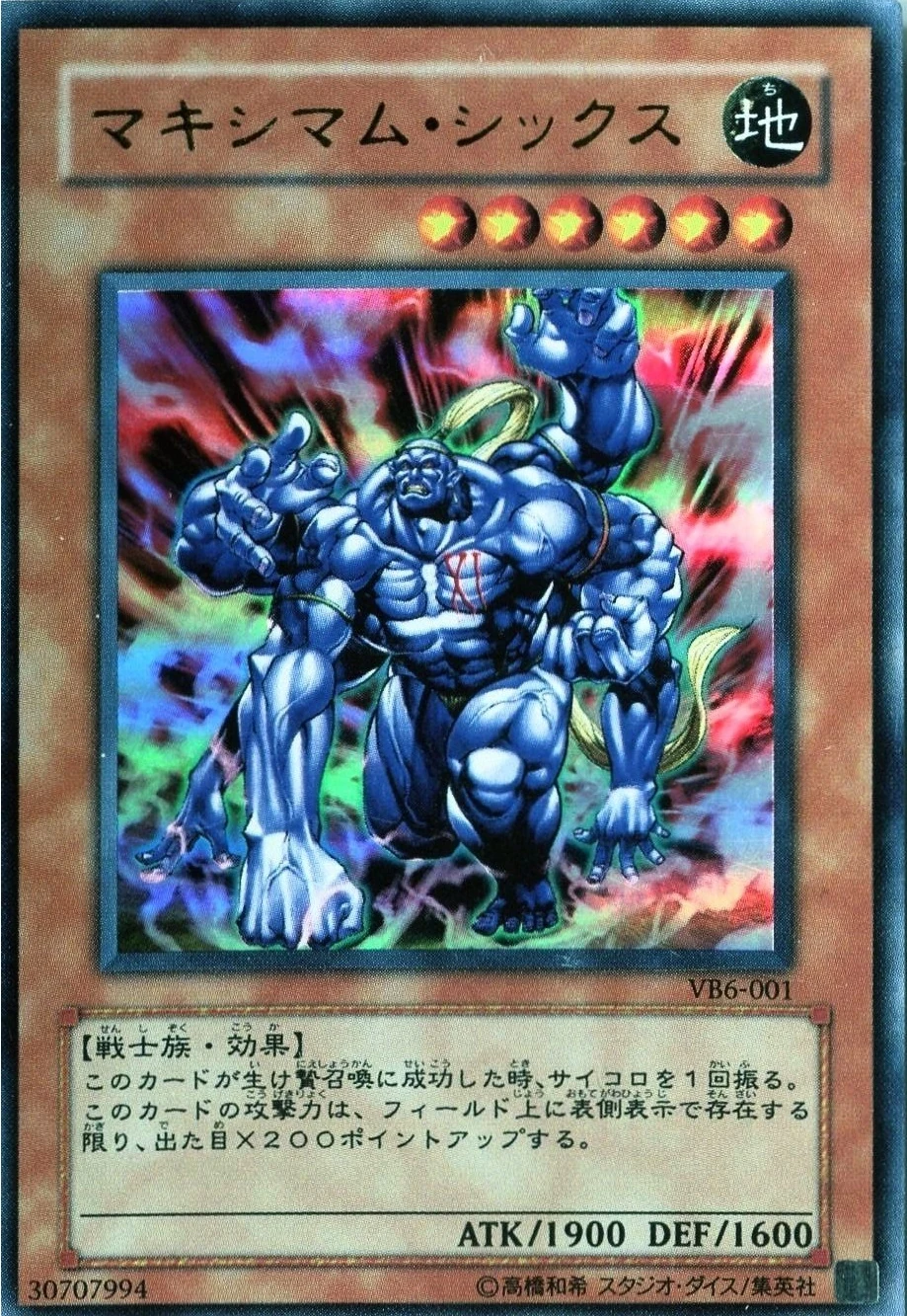 | 이 카드가 어드밴스 소환에 성공했을 때, 주사위를 1회 던진다. 이 카드의 공격력은 필드 위에 앞면 표시로 존재하는 한, 나온 눈의 수 x 200포인트 올라간다. | ||||