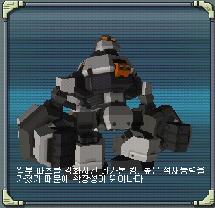 일부 파츠를 강화시킨 메가톤 킹. 높은 적재능력을 가졌기 때문에 확장성이 뛰어나다.