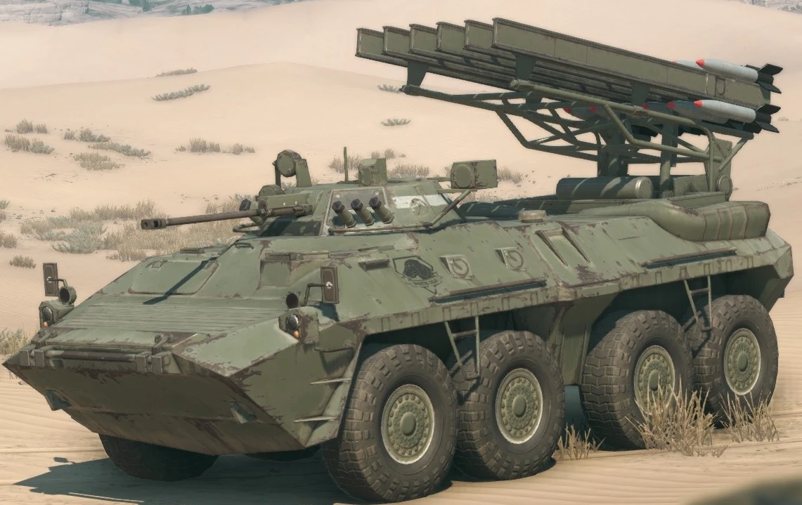 - 적 장갑차 제거/적 전차제거: 여러가지 종류의 장갑차나 전차를 제거하는 임무다. 타겟만 장갑차/전차로 다르고 양자는 거의 동일한 속성의 미션. 장갑차/전차만 제거하면 미션 클리어가 아니라 호위 병력을 모두 회수하거나 제거해야한다. 초반에는 장갑차/전차 1대에 호위도 4~6명이 순찰을 도는 정도지만 나중에는 장갑차/전차 2대씩에 호위로 군데군데 저격수가 배치돼있고 중장갑병이 순찰을 돌며 그 위로는 헬기가 날아다니는 골때리는 미션이 된다. 후반부 임무는 붉은색 강화판 전차/장갑차가 나와서 전면전을 하기가 영 껄끄러워져 잠입 후 회수가 반 강제되는 경향이 있으며 거의 막판 임무가 되면 저 조건에 더해 아주 가까운 곳에 옵스 타겟이 아닌 아웃포스트 병력들이 몰려 있어서 얼럿이 걸리면 강화판 기갑+헬기+스나이퍼+아웃포스트 병력을 한번에 상대해야하는 미친 미션이 된다.(...) 장갑차/전차는 팔면 꽤 돈이 되는 물건이므로 필요없더라도 파괴보다는 회수를 권장. 사실 난이도도 잠입 후 회수가 쉽다. 피스 워커 시절과 달리 헬기는 회수할 방법이 없는 것이 안타깝다.