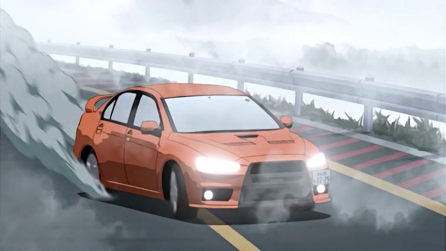 작중에서 미쓰비시 랜서 에볼루션 X #2 애니메이션에서 10세대 랜서 에볼루션 X의 모습