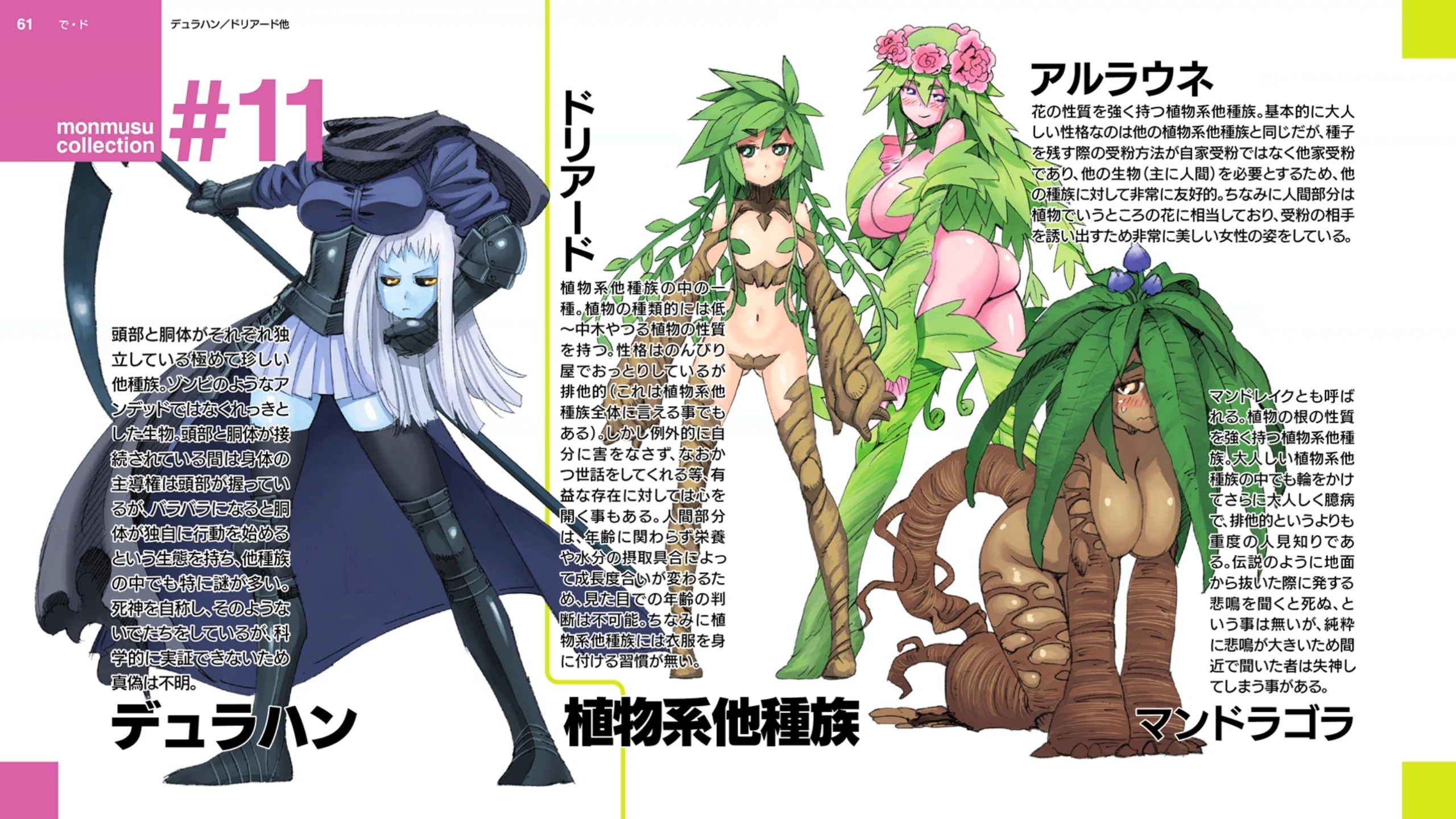 각각 듀라한과 식물족(드라이어드, 알라우네, 만드라고라)이 소개되었는데, 알라우네는 번식을 하기 위해 인간 남성이 필요하므로 인간 남성에게 매우 우호적이라고 하며, 만드라고라는 부끄러움이 많은 성격을 지니고 있어 평소에는 땅 위로 잘 나오지 않는다고 한다. 만드라고라 가 소리를지를 경우 죽을 정도는 아니지만 기절해버릴수도 있다는 듯 하다.