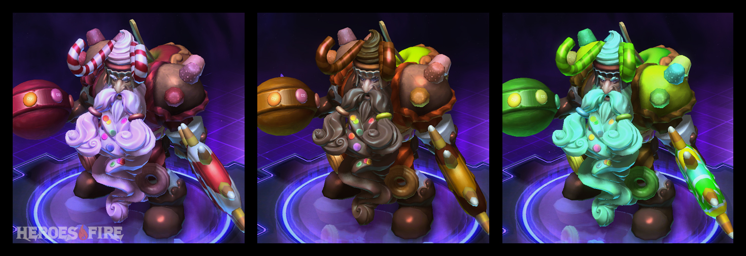 '사탕산(Kandy Mountain)'의 왕이라는 설정이다. 무슨 마약하시길래 이런생각을 했어요 수염은 연분홍색 크림으로 변하고, 롤리팝 사탕 무기를 들고 온갖 과자로 만들어진 갑옷을 입고 있다. 맛있겠다! 무기에 박힌 MnM's 초콜릿에는 'M' 대신 블리자드 혹은 브론즈비어드를 뜻하는 'B'가 새겨져 있다. 화신이 발동되면 초콜릿과 스프링클을 뒤집어쓴 모습으로 변한다.