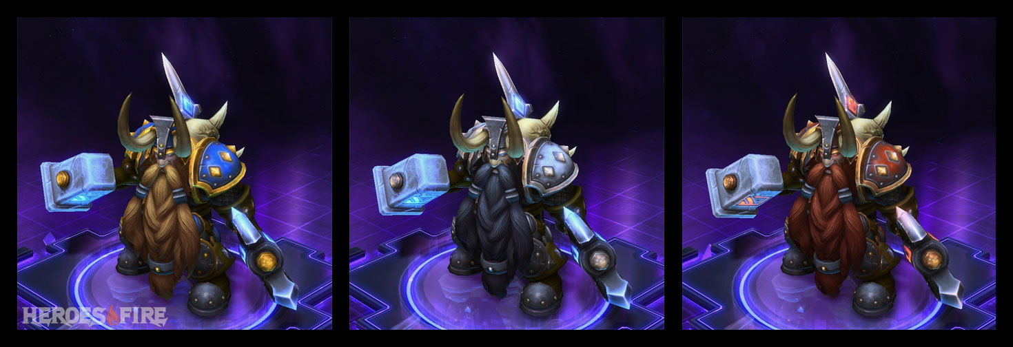 견갑과 투구가 리치 왕의 분노 얼음왕관 성채에서 입은 이미야르 군주 세트(무라딘 전용 컬러)로 바뀌었고, 무기도 WoW에서 무라딘이 들고 있는 것으로 바뀌었다. 화신이 발동되면 금색과 검은색의 세련된 투톤으로 변한다. 마스터 스킨 중에서 티리엘의 것과 함께 가장 고평가 받는다.