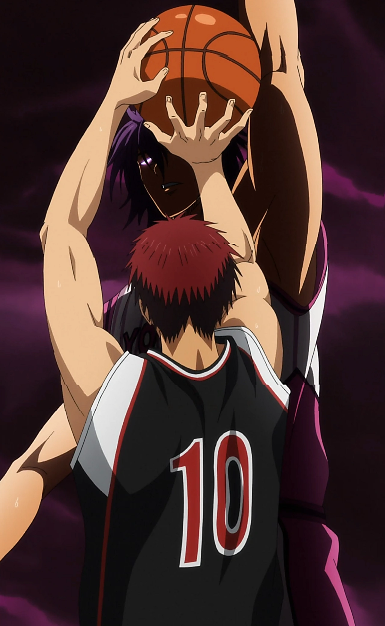 물론 당연하게도 공격에 가담하면 공격력도 사기 수준으로서 짜증이 극도에 달해서 공격했을 땐 무려 100점이 넘는 득점을 기록한 적도 있다고 한다. 쿠로코의 언급에 따르면 원래는 공격이 특기라고. 3명의 마크를 간단히 뿌리치고 덩크로 골대를 부숴버리는 파워와 높이는 압도적이다 못해 사기적일 정도로서 그야말로 막을 방법이 없는 마왕 포스.