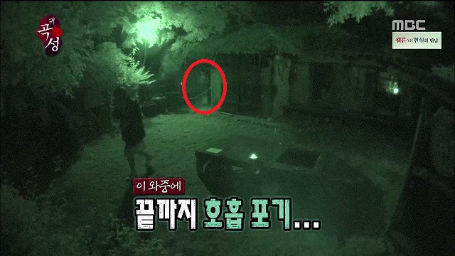 다음 타자 재석은 3번째 이상한 인형 울음소리까지는 잘 참으며 들어가다가 갑자기 튀어나온 곡성 악마에 화들짝 놀라서 줄행랑을 치고 말았다. 어지간히 무서웠는지 길이 아닌 곳을 단숨에 내달려서 기슭까지 내려온 뒤 주저앉았다.