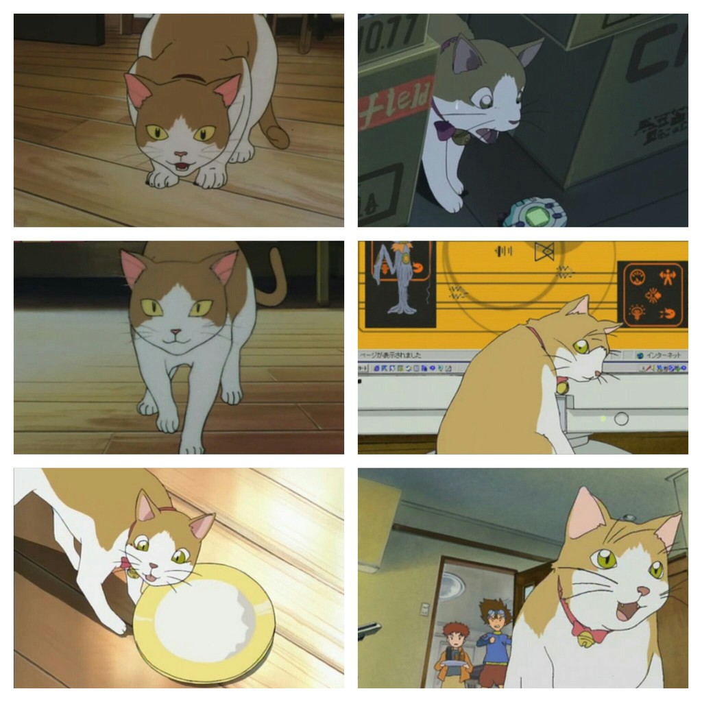 태일이와 나리네 집에서 키우는 고양이로 처음 등장은 디지몬 어드벤처 극장판이며(작중년도는 1995년) tv판에서는 각각 31화, 34화에 등장했고 또 우리들의 워게임에도 등장하였으나 이후 파워디지몬이나 디지몬 어드벤처 트라이에서 등장하지 못하는 걸보면 2000~2002년 사이에 죽은 것같다.
