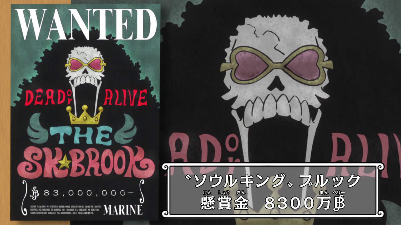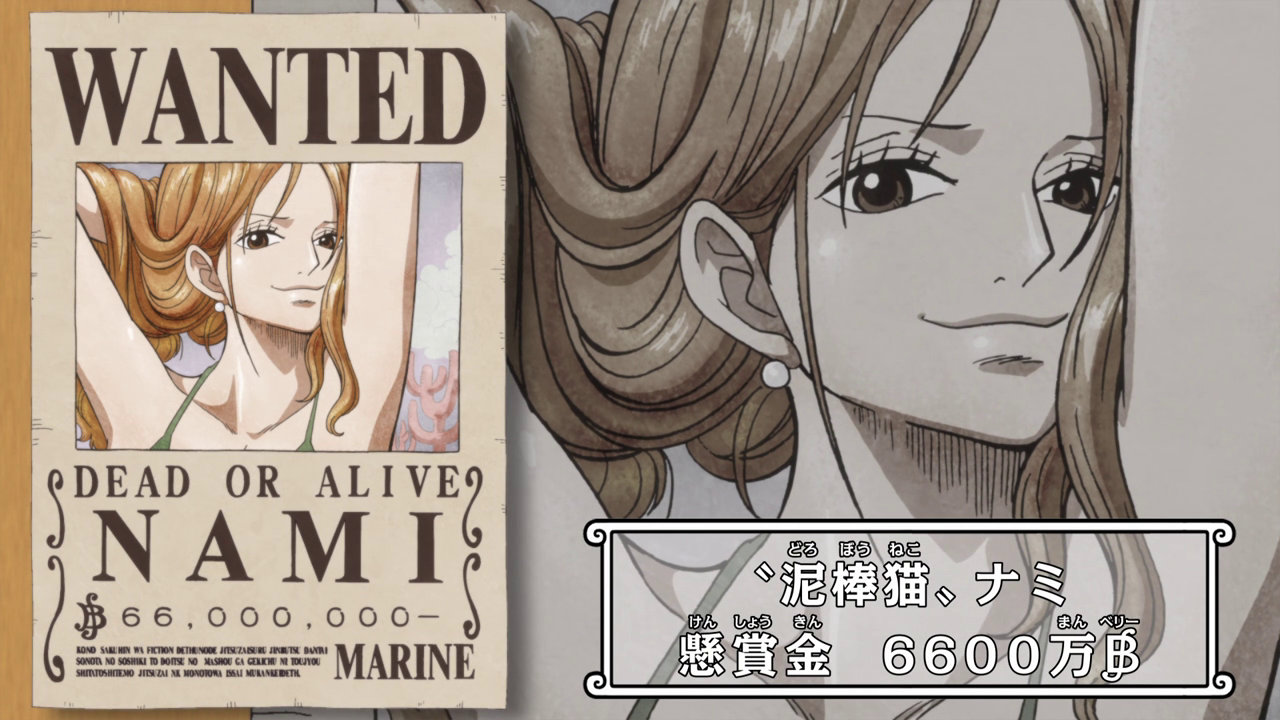 총합 현상금: 3천만 베리[23] → 2억 3천9백만 베리[24] → 6억 6천7백만 50베리[25] → 7억 50베리[26] → 8억 50베리[27]15억 7천만 100베리[28]