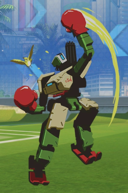 2016 하계 스포츠대회 이벤트 한정 커스텀. 2016년 8월 3일부터 22일까지만 얻을수 있는 하계 스포츠대회 전리품 상자에서만 획득할 수 있다. 턱을 쳐서 턱이 올라가면 지는 권투 로봇 장난감 패러디다.만약 이걸 하고있는 바스티온을 발견하면 타이밍맞게 근접공격을 해주자.
