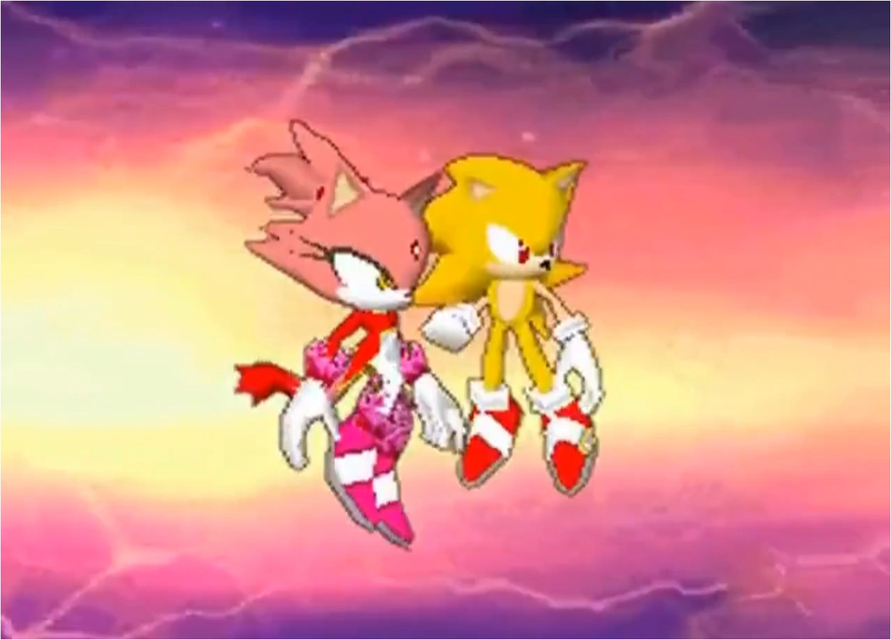 그리고 에메랄드의 진정한 사용법을 알게 된 블레이즈는 소닉과 함께 슈퍼화하여 에그 샐러맨더를 털어버리고, 소닉과 작별 인사와 악수를 나눈 뒤 자신의 세계로 돌아간다.