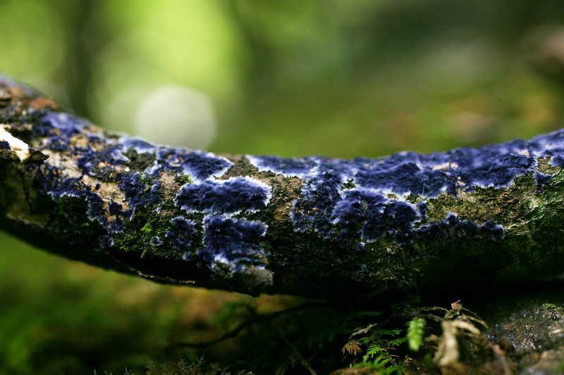 이름답게 표면이 파란색인데, 보시다시피 색깔이 정말 예쁘다!! 마치 나무가 파란색 모피코트를 입은 듯한 느낌이다. 그래서 '청자색모피버섯'이라는 이름이 붙은 것으로 보인다. 푸른곰팡이 혹은 아메바를 떠올릴 법한 독특한 비주얼을 지닌 탓에 '도대체 이게 어딜 봐서 버섯일까?' 싶겠지만, 엄연한 버섯이다!