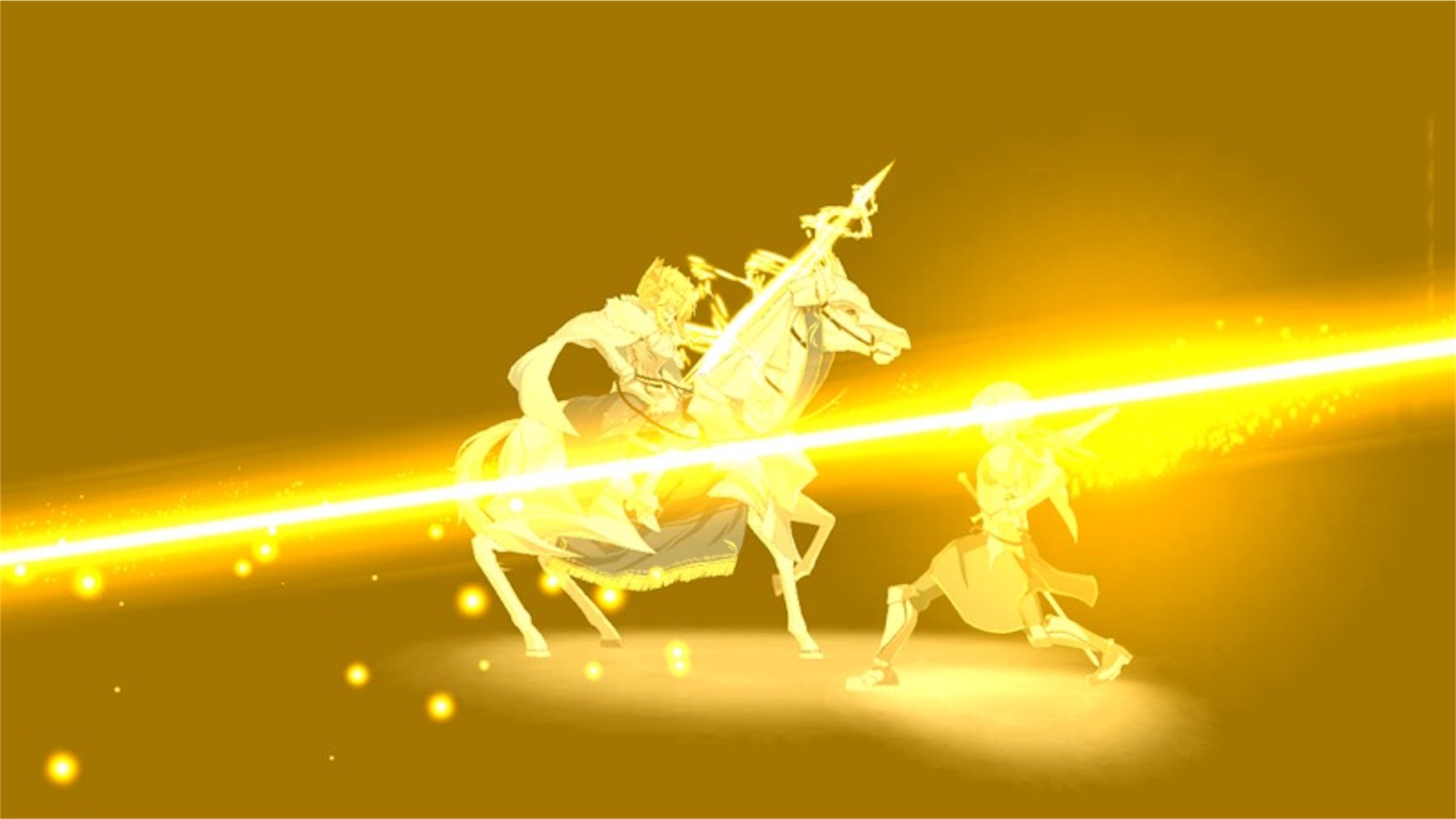 | 켈트의 전신이 사용한 신조병장과 동명이지만, 정체는 돌려주지 못한 성검 엑스칼리버 상시발동형의 보구. 진명해방 " 일섬하라 은색의 팔데드 엔드 아가트람에 의해 대군단 섬멸공격을 한다. ▶ Fate/Grand Order 인게임 마테리얼 |