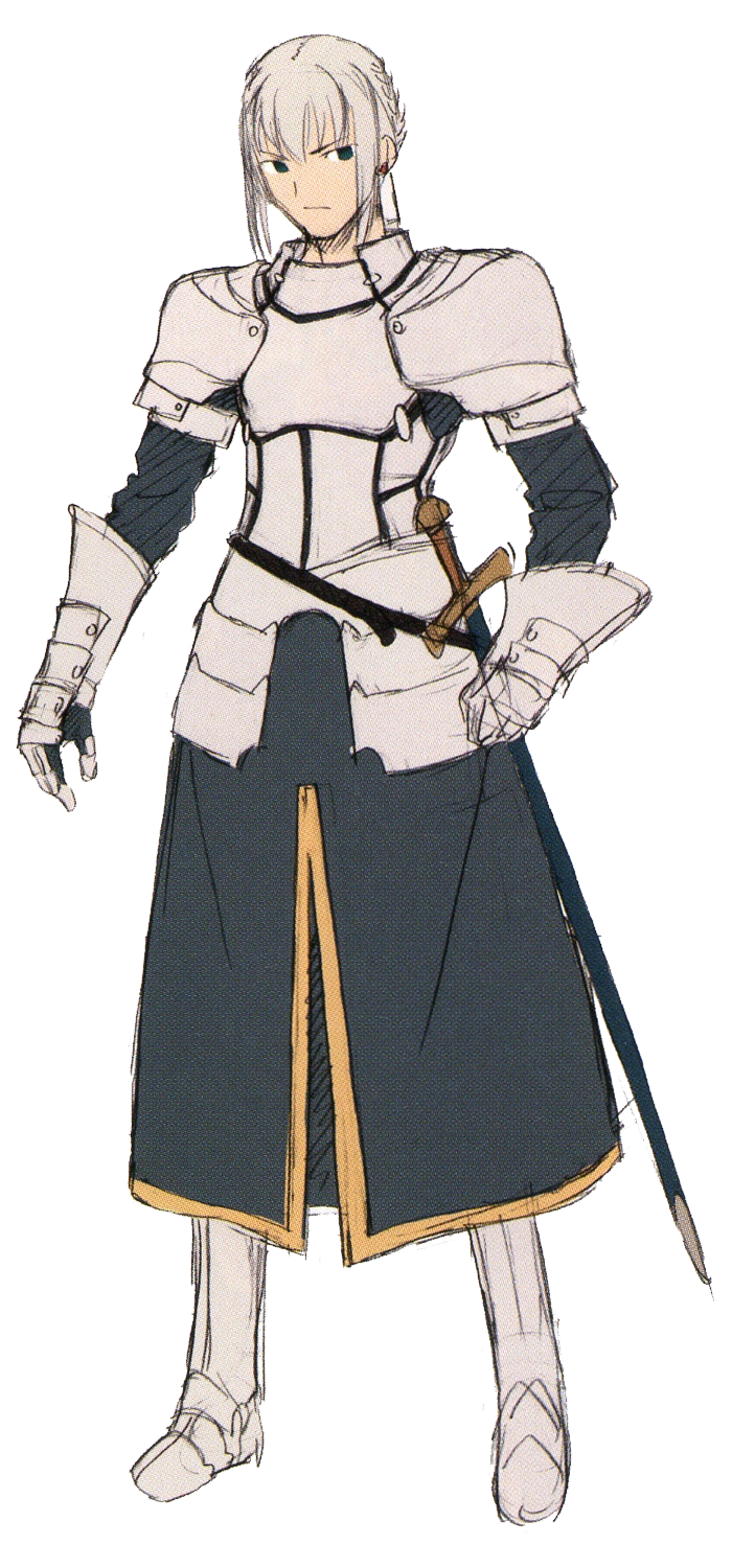 아서 왕 전설의 원탁의 기사 베디비어와 거의 같은 설정. 캐릭터 첫 공개 시에는 양팔이 멀쩡했으며, '인간답지 않은 아서 왕의 인간다운 표정'을 보기 위해 다른 기사들이 다 떠나갔을 때에도, 마지막까지 아서 왕의 곁을 지킨 충직한 '젊은' 기사라는 설정이며 케이, 가웨인 경과 함께 아서 왕보다 오래된 최고참 기사이다. 덧붙여 마지막까지 아서 왕이 여자라는 걸 눈치채지 못했다.[3] 아서라고만 부르는 걸 보면 아르토리아라는 이름은 몰랐는 듯.