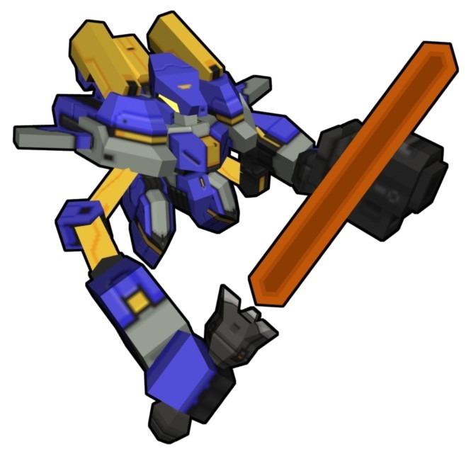 AURA탑재형의, 소형 근접전용 로봇. HD와 AM이 대응, 변형 시 EN 회복량과 안전성이 증가하고 서브 무기의 위력이 향상, 휘두르는 근접 무기 사용시 팔이 쭉쭉 늘어나 사거리가 유리해진다.